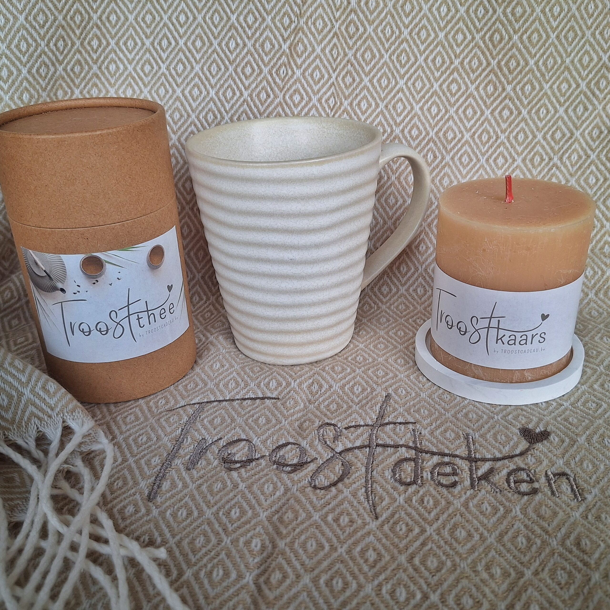 In deze troostdoos zit ook een kwalitatieve Bolsius-troostkaars in oat beige: een zachte, natuurlijke tint die rust en warmte brengt. Een kaars aansteken is een klein maar krachtig ritueel: even zitten, voelen, herinneren. Het vlammetje wordt een teken van verbondenheid. De kaars is palmolievrij, bevat 25% plantaardige wax en brandt tot ca. 35 uur.